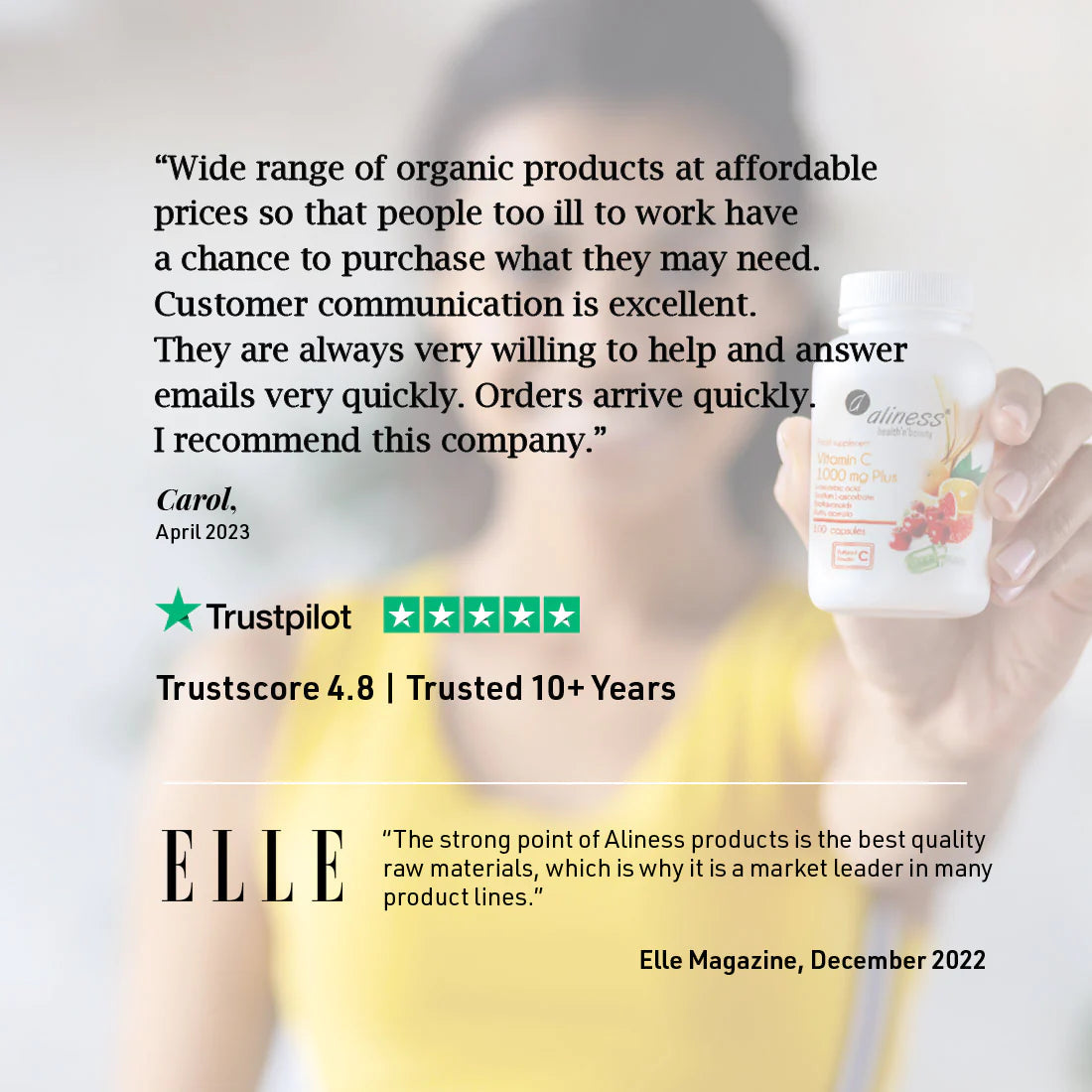 "I love Aliness products. Very high quality. I'm working as a personal trainer and when I write diet and supplementation plans for my clients, I base them on Aliness supplements. I know it works, as I have blood tests results. Top quality. Thank you. "