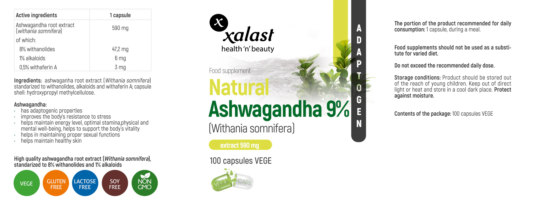 Xalast Natural Ashwagandha (Withania Somnifera) 580 mg 9%, 100 Vegan capsules™